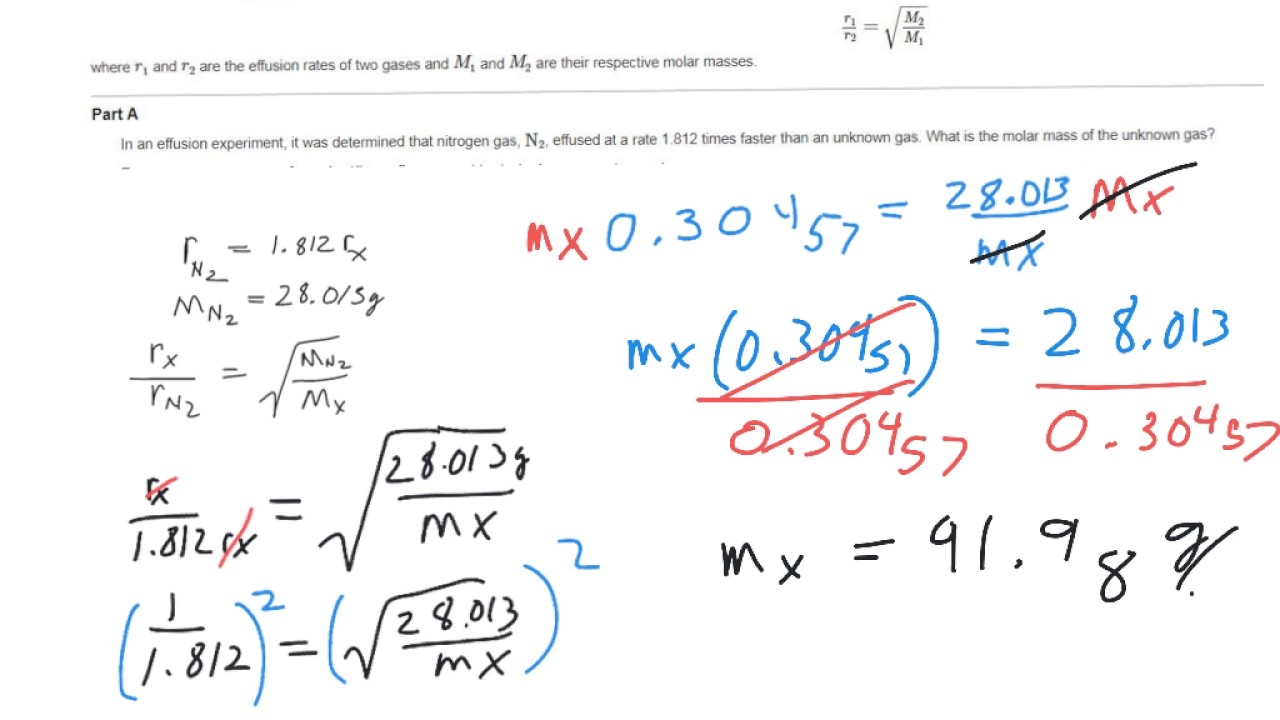 Grahams Law Of Effusion Sample Problem Chem In 10 Online Chemistry Tutoring Youtube